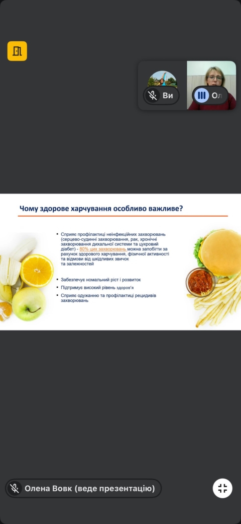 4 грудня 2025Учні 8–9 класів долучилися до онлайн-вебінару «Основи здорового харчування», організованого фахівцями Височанського відділення Харківської філії ДУ «Харківський ОЦКПХ МОЗ».