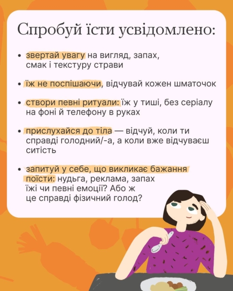 Ці рекомендації та уважність можуть стати першим кроком до здорових стосунків з їжею