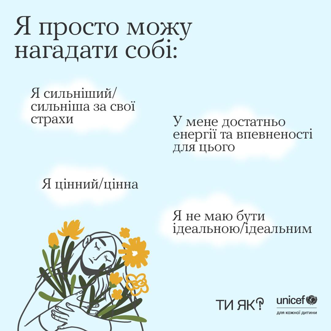 Навіть якщо наразі не знаєте, що собі сказати, ми зібрали фрази-мотиватори, які стануть в нагоді. Їх можна говорити собі біля дзеркала зранку, шепотіти у складний момент, подумки повторювати під час прогулянки та періодично нагадувати дітям ![]()
