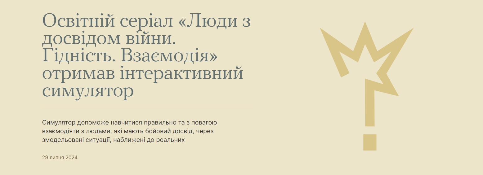 Освітній серіал “Люди з досвідом війни. Гідність. Взаємодія” отримав інтерактивний симулятор