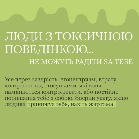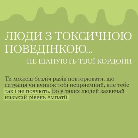 У випадках, коли такі підходи не працюють, спробуй звернутися за допомогою до фахівця з психічного здоров’я. Або відпусти таку людину та припини спілкування взагалі