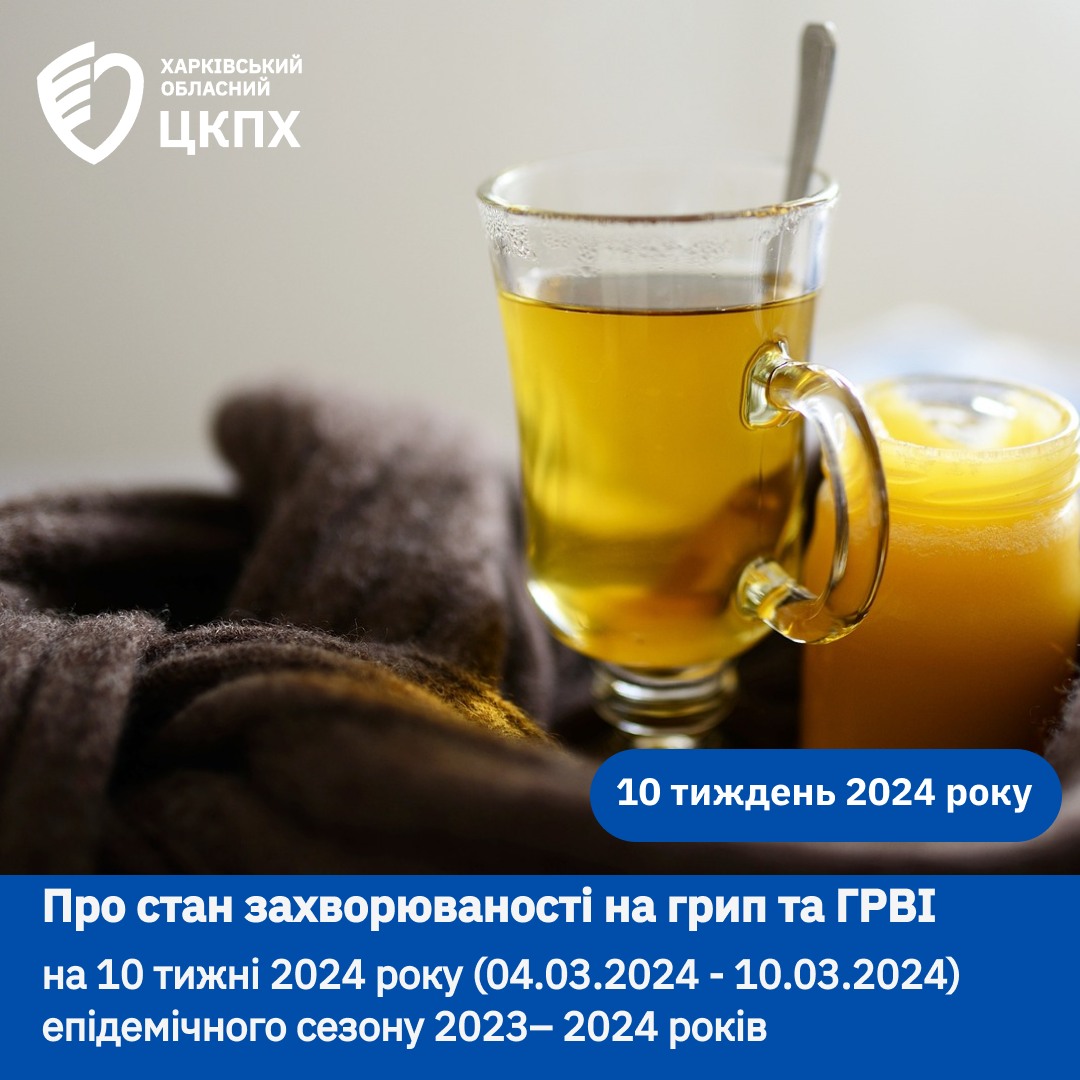 Про стан захворюваності на грип та ГРВІ на 10 тижні 2024 року (04.03.2024 – 10.03.2024) епідемічного сезону 2023 – 2024 років