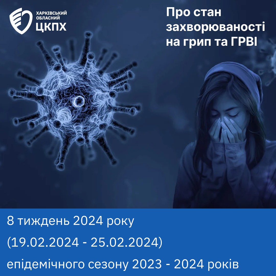 Про стан захворюваності на грип та ГРВІ на 8 тижні 2024 року (19.02.2024-25.02.2023) епідемічного сезону 2023-2024 років