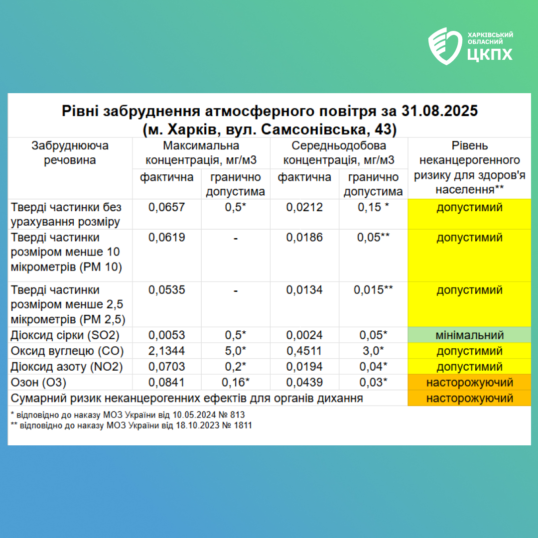 Рівні забруднення атмосфетного повітря станом на 01.09.2025