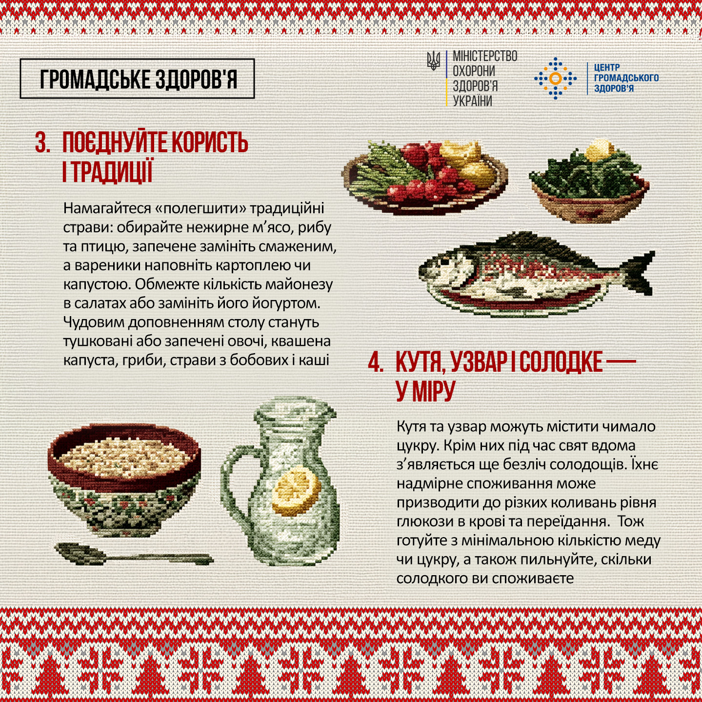Та деякі страви можуть містити багато олії (смажені гриби чи риба), простих вуглеводів (кутя з великою кількістю меду або цукру) або солі (соління, мариновані овочі).
