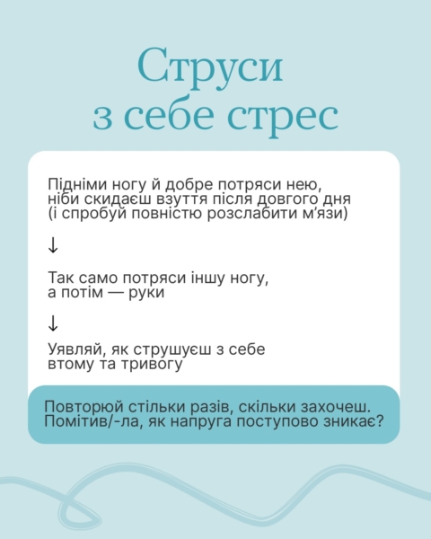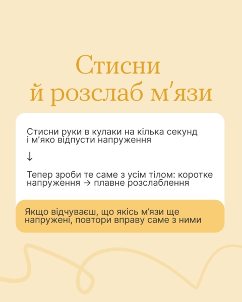 26 листопада 2025😶🌫️ Стрес проявляє себе по-різному: тривожними думками, втомою чи фізичним дискомфортом — коли паморочиться в голові, бракує повітря, стискає щелепу чи плечі підіймаються до вух.