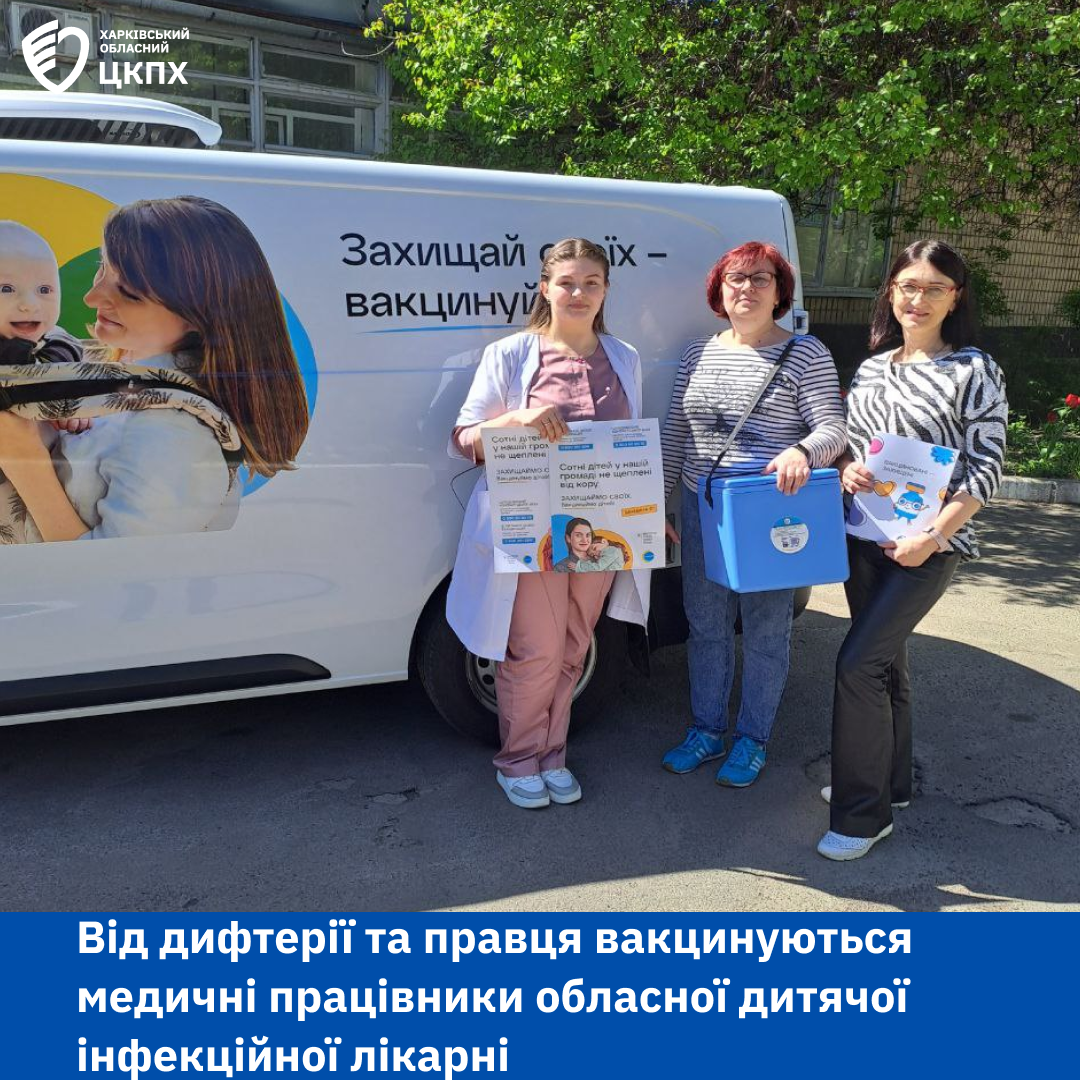 З метою захисту медичних працівників від дифтерії та правця та з нагоди заходів до Всесвітнього тижня імунізації керівництво КНП ХОР «Харківська обласна дитяча інфекційна лікарня» ініціювали проведення вакцинації своїх співробітників в кабінеті щеплень закладу.