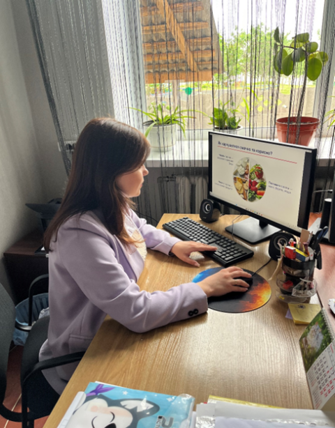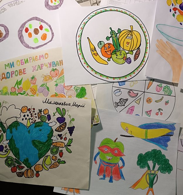Розпочата аналогічна робота і з учнями молодших класів. Розроблену фахівцями обласного рівня презентацію «Тарілка здорового харчування» вже протестували фахівці Чугуївської філії та Сахновщинського відділення Берестинської філії. Вебінари та лекції на цю тему прослухали 70 учнів ліцеїв в Європейський тиждень громадського здоров’я, який тривав з 12 по 16 травня поточного року. В доступній та цікавій формі діти молодшого віку слухали про роль овочів, фруктів, білків, злаків та молочних продуктів у збереженні здоров’я та підтриманні енергії. Особливу увагу приділили порадам щодо корисного сніданку, уникнення шкідливих перекусів та необхідності достатнього питного режиму. Після вебінарів проведено кункурс дитячих малюнків, в яких прийняли участь 68 дітей, визначено та нагороджено переможців.
