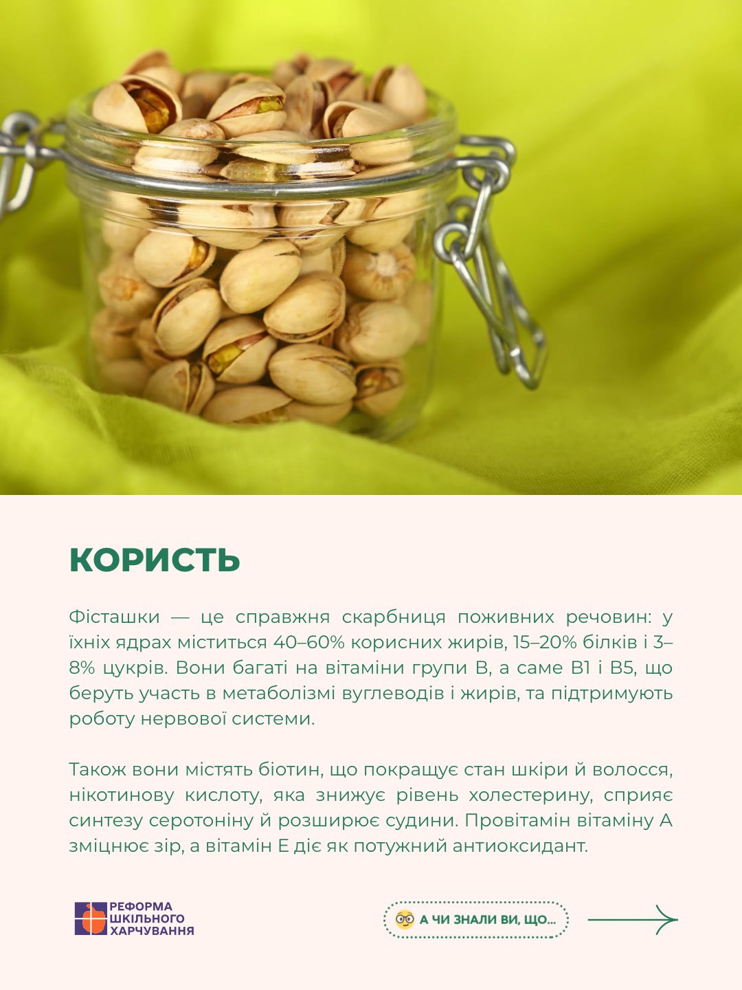 🧘♀️ До того ж цей перекус може заспокоїти нервову систему: поки ви очищаєте фісташки, активізується дрібна моторика, що допомагає знизити рівень напруги. А ще вони — джерело білка, жирів і вітамінів для покращення здоров’я серця та шкіри.