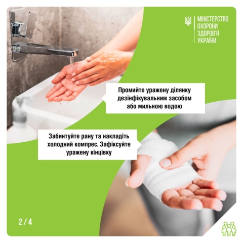 ☛ Промити місце укусу чистою водою з мильним розчином.
