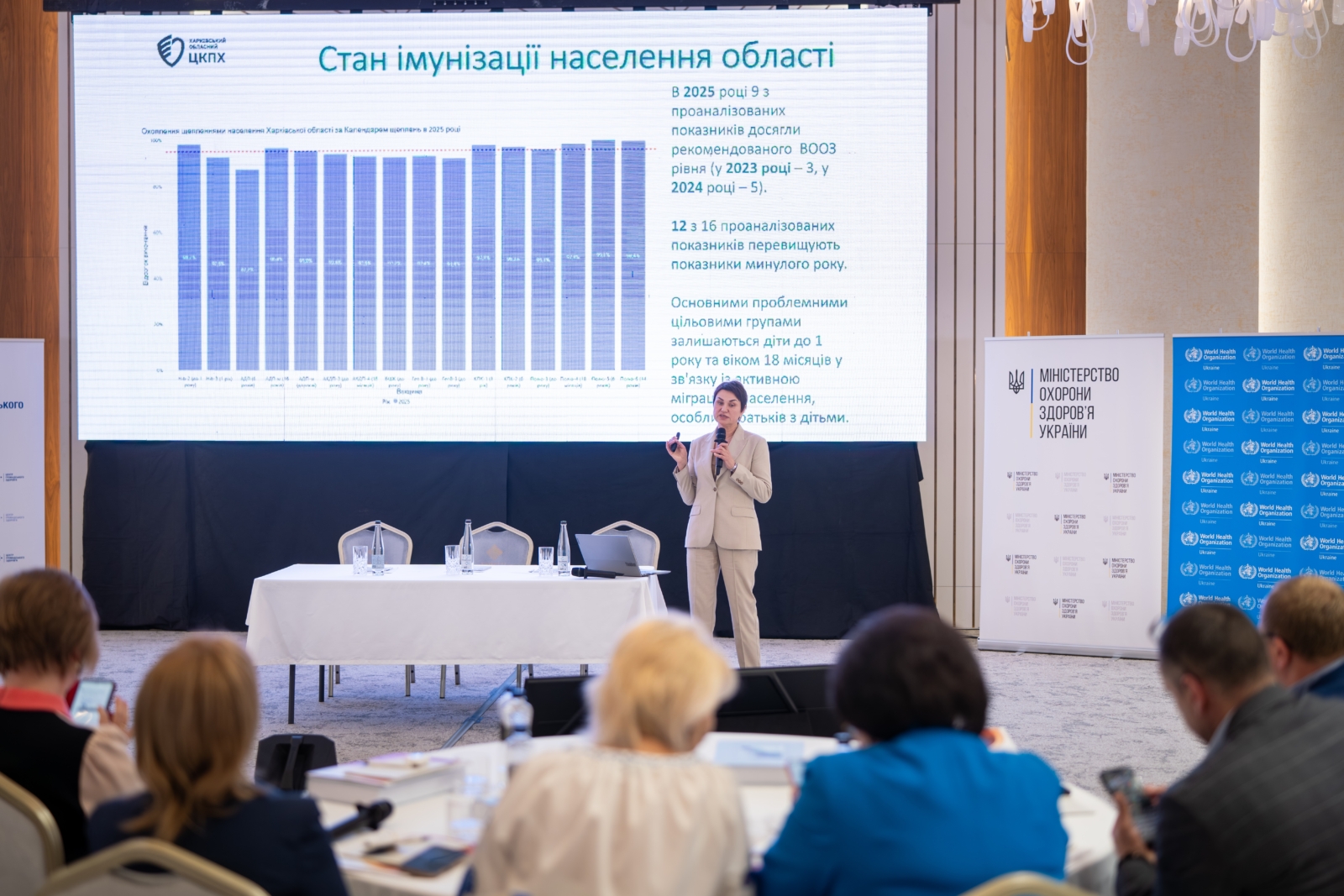 Під час наради Любовь Махота представила досвід Харківщини у впровадженні цифрових інструментів для управління імунізацією. У своєму виступі вона акцентувала увагу на практичних викликах, з якими стикаються медичні працівники, та рішеннях, які вже допомагають оптимізувати роботу, підвищити якість даних і зробити управлінські процеси більш ефективними.
