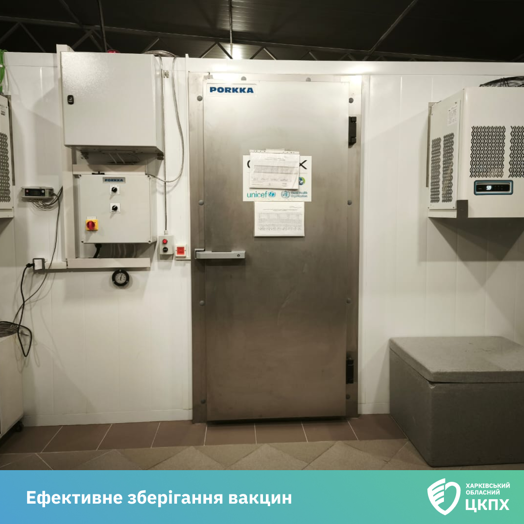 У рамках співпраці з міжнародними партнерами Харківський обласний центр контролю та профілактики хвороб (далі – Центр) оснащений холодовою кімнатою, холодильниками та морозильними камерами, які здатні підтримувати необхідну температуру для зберігання вакцин.