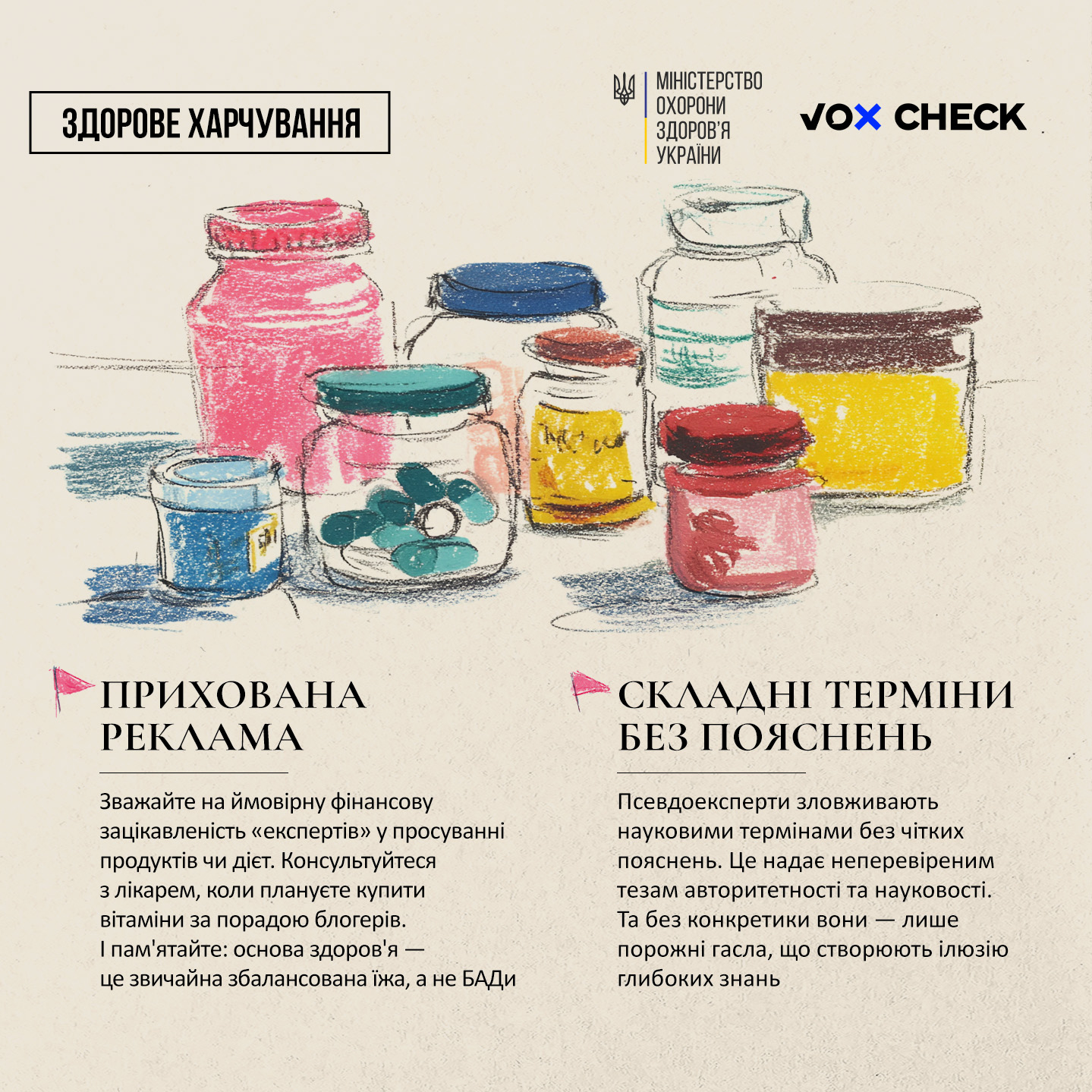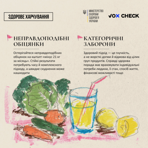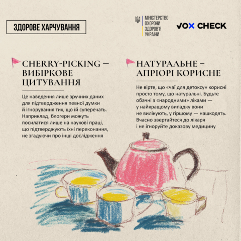 🔎 Команда VoxCheck підготувала посібник, що допоможе виявити дезінформацію у сфері здоров’я. У ньому зібрано найпоширеніші фейки про їжу — й наукові пояснення, чому їм не варто вірити.