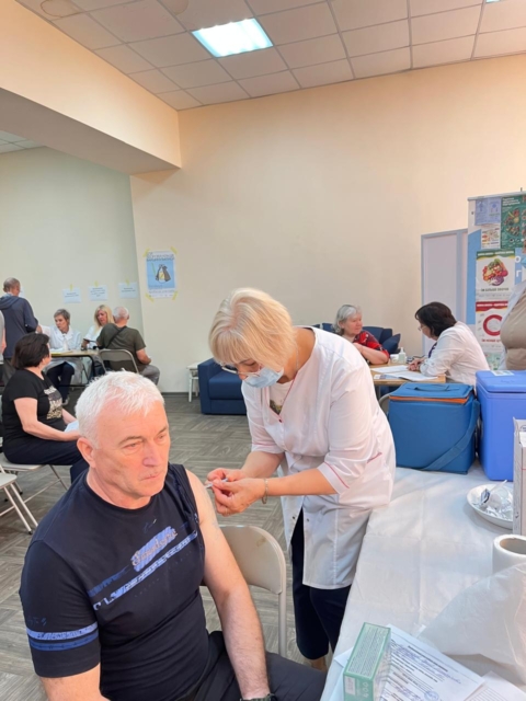 Під час інформаційно-просвітницького заходу наші фахівці спілкувались з мешканцями гуртожитку стосовно причин, умов та факторів ризику виникнення інфекційних та неінфекційних хвороб, надавали рекомендації щодо їх профілактики, роз’яснювали важливість щеплення від вакцинокерованих інфекцій, у тому числі нового субваріанту COVID-19. Роздавали тематичну друковану продукцію – корисні пам’ятки для людей різного віку.