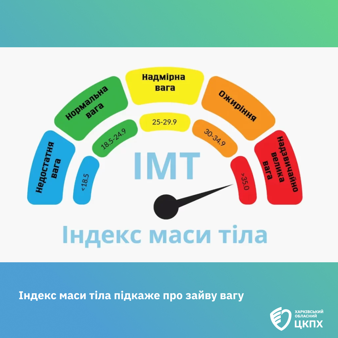 ⚖️ Оцінити вагу людини можна за індексом маси тіла (далі – ІМТ), який обраховується шляхом ділення маси тіла людини (кг) на зріст (м), зведений у квадрат. Відповідно до визначень Всесвітньої організації охорони здоров’я нормальною вважається вага при значеннях ІМТ 18,5-24,9. Якщо ІМТ знаходиться в інтервалі від 25,0 до 29,9, людина має надлишкову вагу, а вище 30,0 – ожиріння різного ступеню.