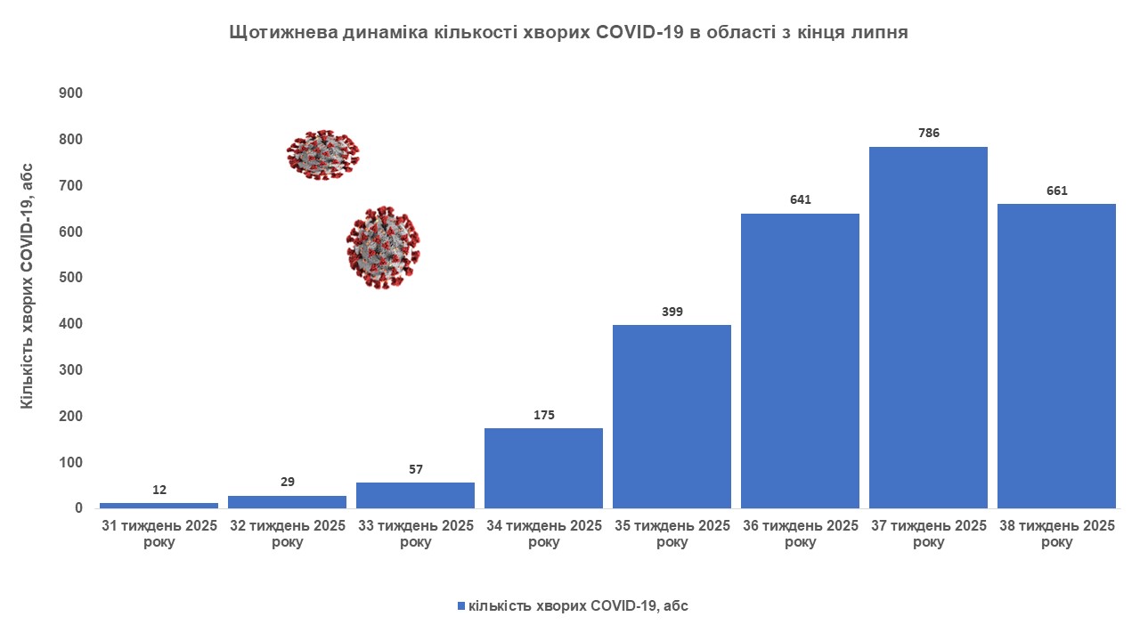 Як і минулого року, з 30 тижня 2025 року (з 21 по 27 липня) в області відмічається поступове зростання захворюваності COVID-19.
