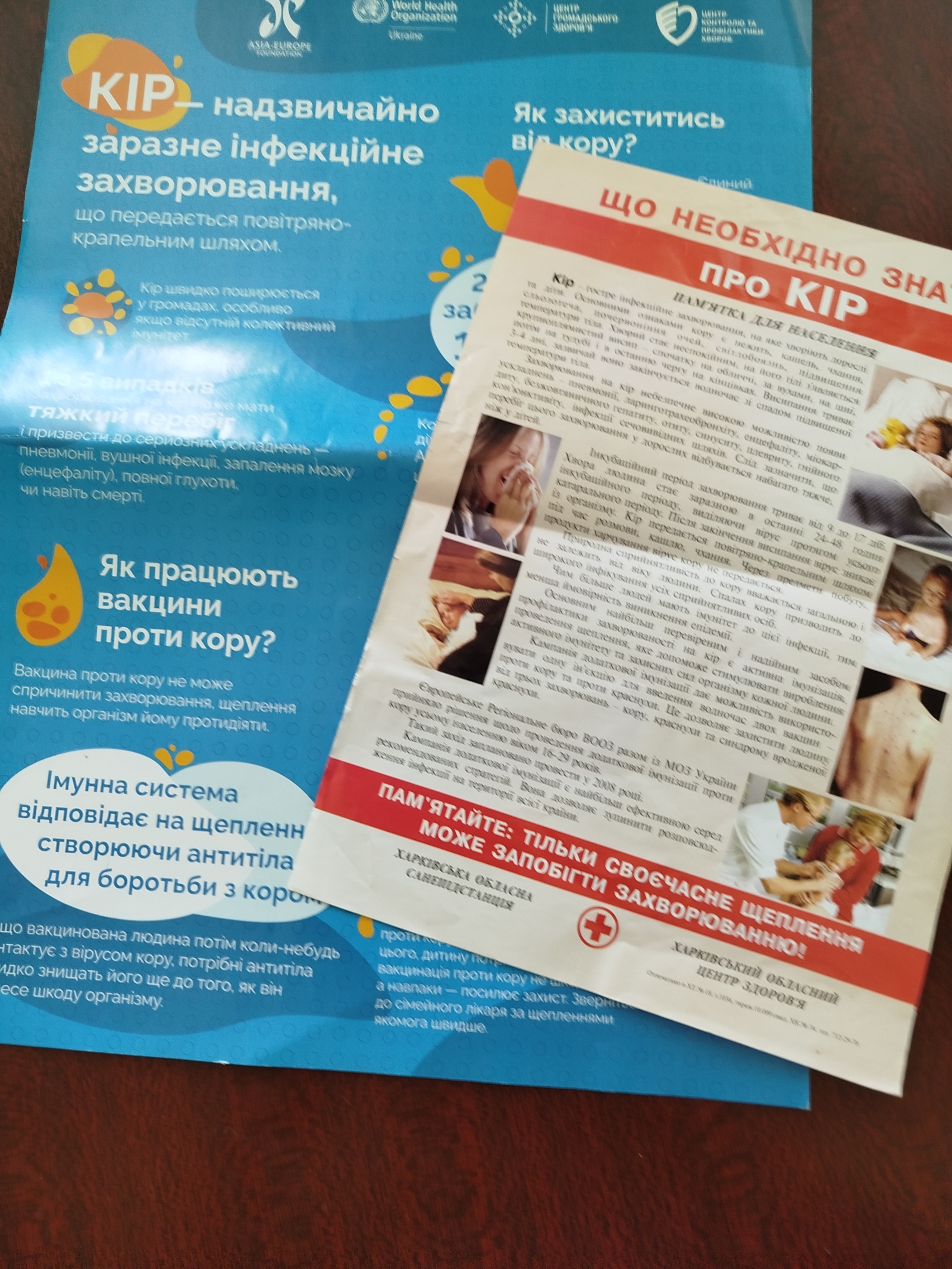 Присутнім також роздали друковані інформаційні матеріали: «Кір – надзвичайно заразне інфекційне захворювання» та «Що необхідно знати про кір».