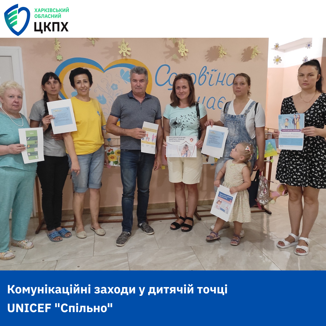 💉29.08.2024 фахівцями Чугуївської філії ДУ «ХАРКІВСЬКИЙ ОЦКПХ МОЗ» у рамках кампанії додаткових заходів з імунізації проти кашлюку, дифтерії та правця у м. Чугуїв проведені комунікаційні заходи з відвідувачами та колективом дитячої точки UNICEF “Спільно”.
