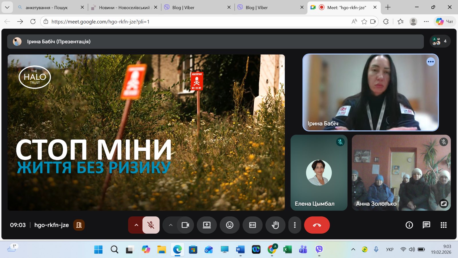 11 березня 2026Представники міжнародної гуманітарної організації HALO Trust в Україні провели 7 лекцій на тему: «Стоп міни. Життя без ризику» в офлайн і онлайн форматі для фахівців Харківського обласного центру контролю та профілактики хвороб, Берестинської, Ізюмської та Лозівської філій, Близнюківського, Височанського, Дергачівського, Зачепилівського, Златопільського, Нововодолазького та Сахновщинського відділень.