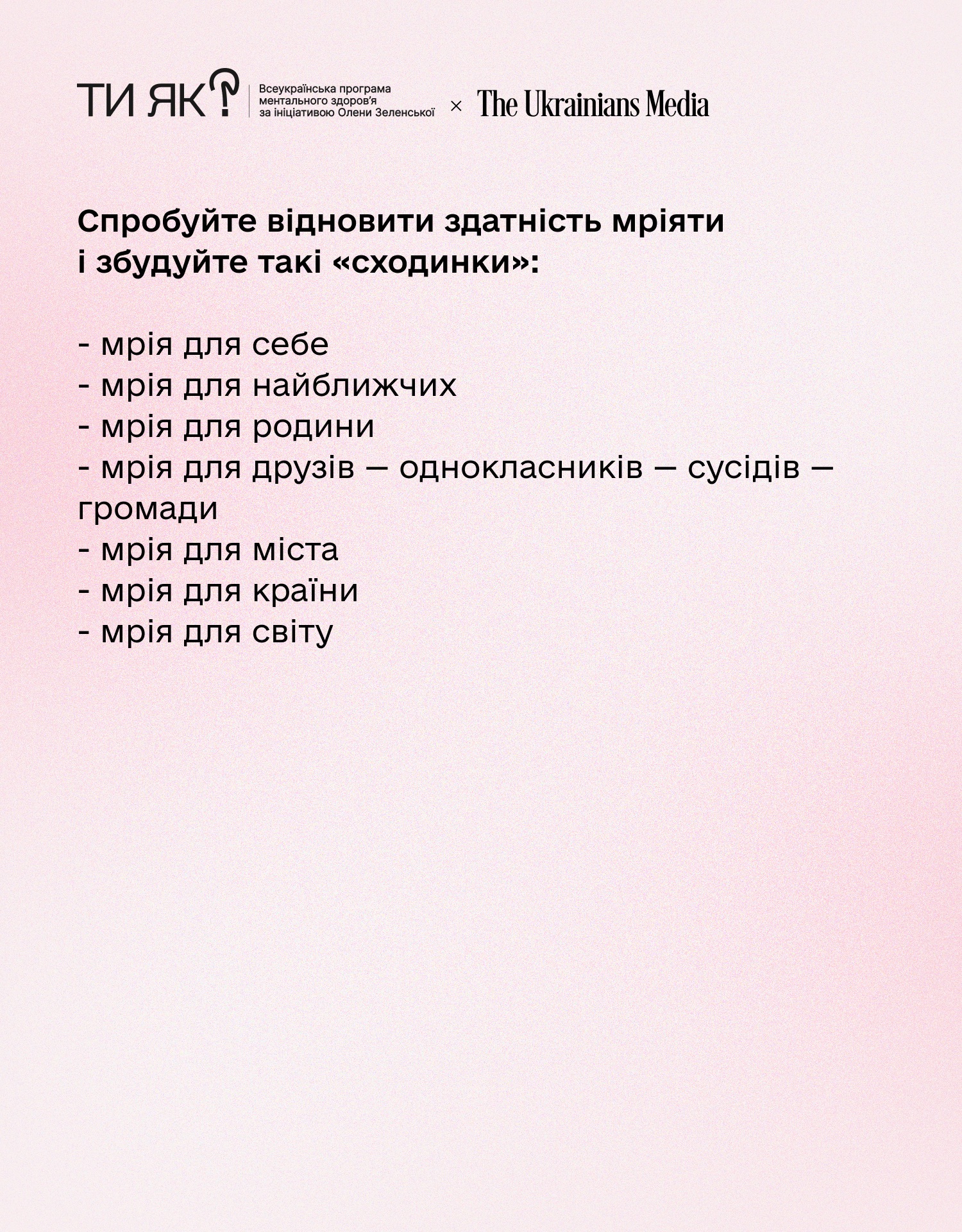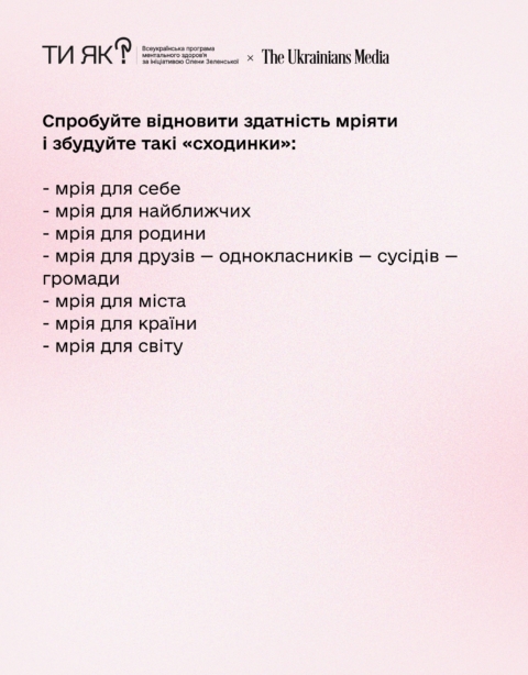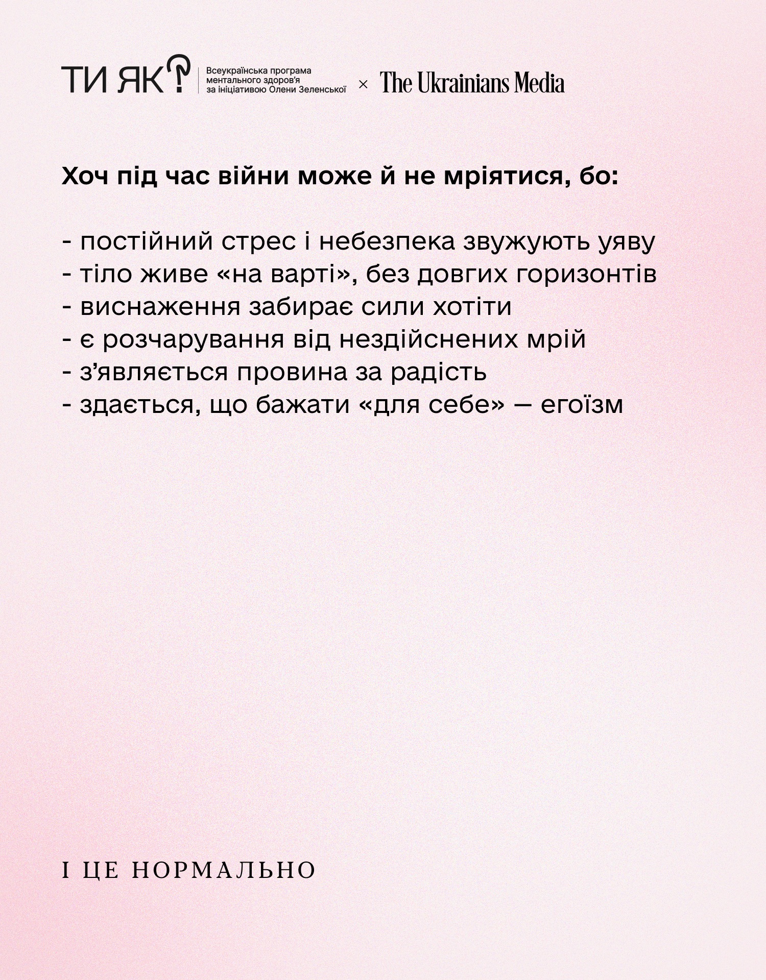 Разом із The Ukrainians та психологинею Світлана Ройз роздумуємо про те, чому мріяти зараз важливо і чому нормально, якщо тобі складно це робити: