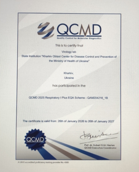 4 лютого 2026Команда вірусологів Харківського обласного центру контролю та профілактики хвороб (ОЦКПХ) успішно взяла участь у міжнародній програмі зовнішньої оцінки якості QCMD (Quality Control for Molecular Diagnostics).