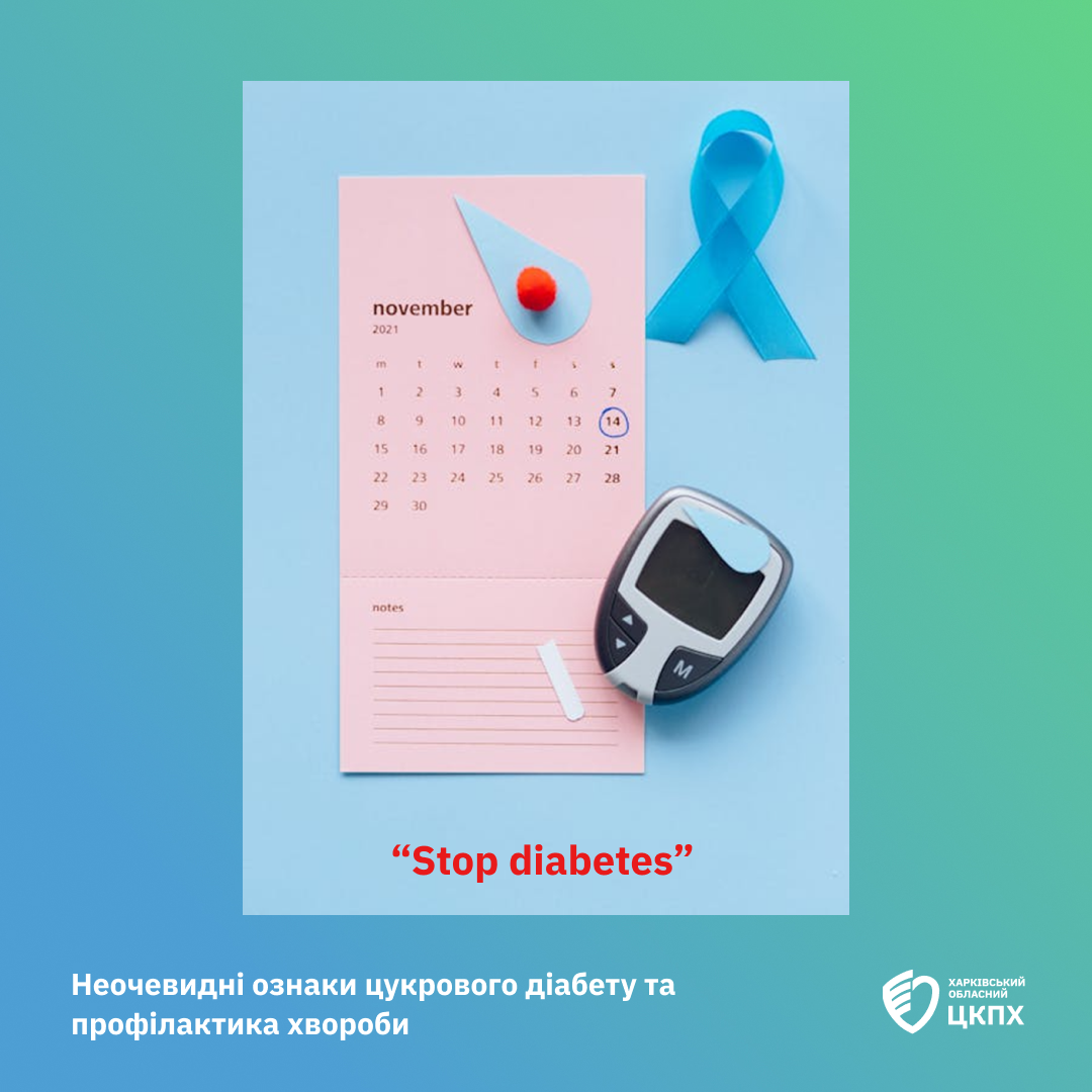 У Всесвітній день боротьби із захворюванням на цукровий діабет, який щорічно відзначають 14 листопада, звертаємо увагу на перші симптоми та профілактику цієї хронічної невиліковної хвороби. В Україні хворіє на цукровий діабет майже 1,5 мільйона людей, в Харківській області зареєстровано більше 70 тисяч таких хворих.
