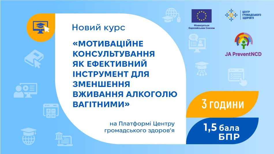 Центр громадського здоров’я запрошує пройти новий онлайн-курс «Мотиваційне консультування як ефективний інструмент для зменшення вживання алкоголю вагітними».