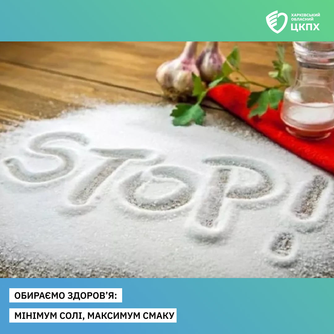 За даними національного дослідження поширеності основних факторів ризику неінфекційних захворювань (STEPS) українці щодня споживають за добу в середньому 12,6 г солі, замість 5 г, які рекомендує Всесвітня організація охорони здоров’я. Надлишок солі в їжі призводить до підвищення артеріального тиску, навантажує серце і судини, збільшує ризики серцево-судинних захворювань: інсультів, інфарктів та серцевої недостатності, сечокам’яної хвороби, гастриту, виразок і раку шлунка, ожиріння та діабету 2 типу, ослаблення кісток і розвиток остеопорозу, погіршення пам’яті та розвитку деменції.