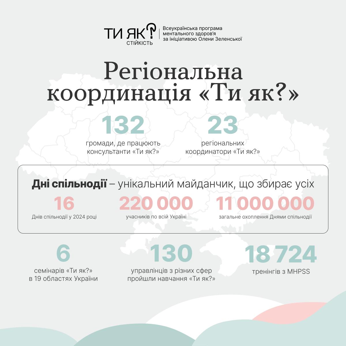Протягом усього 2024 року над цим працювала Всеукраїнська програма ментального здоров’я «Ти як?». Тисячі людей різних професій опановували нові навички, як підтримувати ментальне здоров’я.