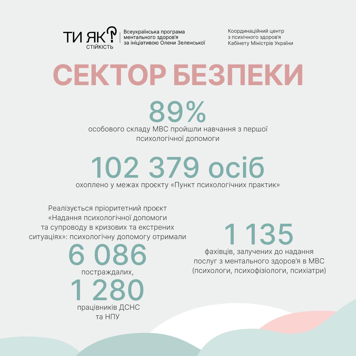 👮♀️ Рятувальники, пожежники, поліцейські. 89 % працівників системи Міністерства внутрішніх справ пройшли підготовку з першої психологічної допомоги, щоб рятувати не тільки фізично, а й морально.