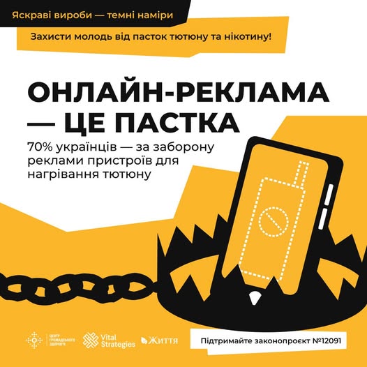 Рекламні банери на сайтах, чат-боти, партнерства з блогерами — усе це створює довіру до брендів та нормалізує шкідливі тютюнові вироби