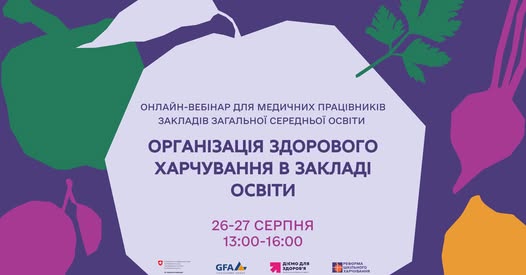 Запрошуємо медичних працівників закладів загальної середньої освіти та освітян на онлайн-вебінар «Організація здорового харчування в закладі освіти».