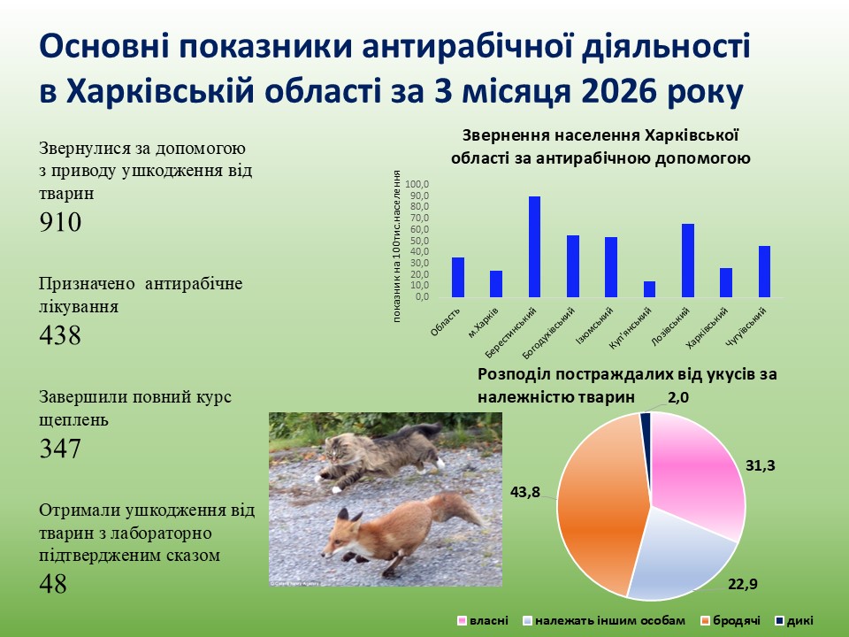 Основні показники антирабічної діяльності в Харківській області за 3 місяця 2026 року