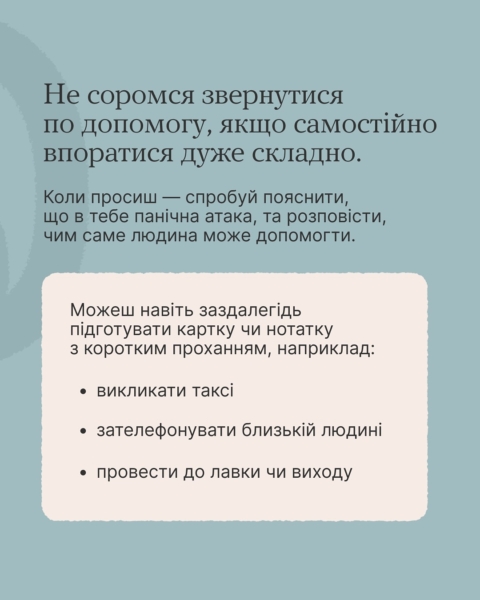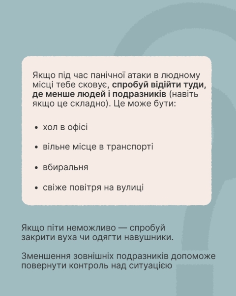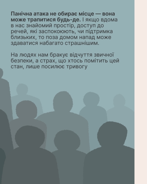 29 липня 2025Страшно, незручно й зовсім невчасно — панічна атака не обирає ні місця, ні моменту. Вона може статися в транспорті, кінотеатрі або просто під час закупів.