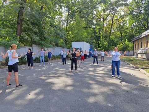 Продовжуючи традиції впровадження здорового способу життя, в День фізичної культури та спорту, який цьогоріч відзначається 14 вересня, як і щодня, фахівці державної установи «Харківський обласний центр контролю та профілактики хвороб Міністерства охорони здоров’я України» беруть участь у спільних руханках на відкритому повітрі під час перерви.