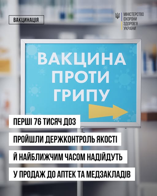 Перші 76 тисяч доз вакцини проти грипу найближчим часом надійдуть у продаж