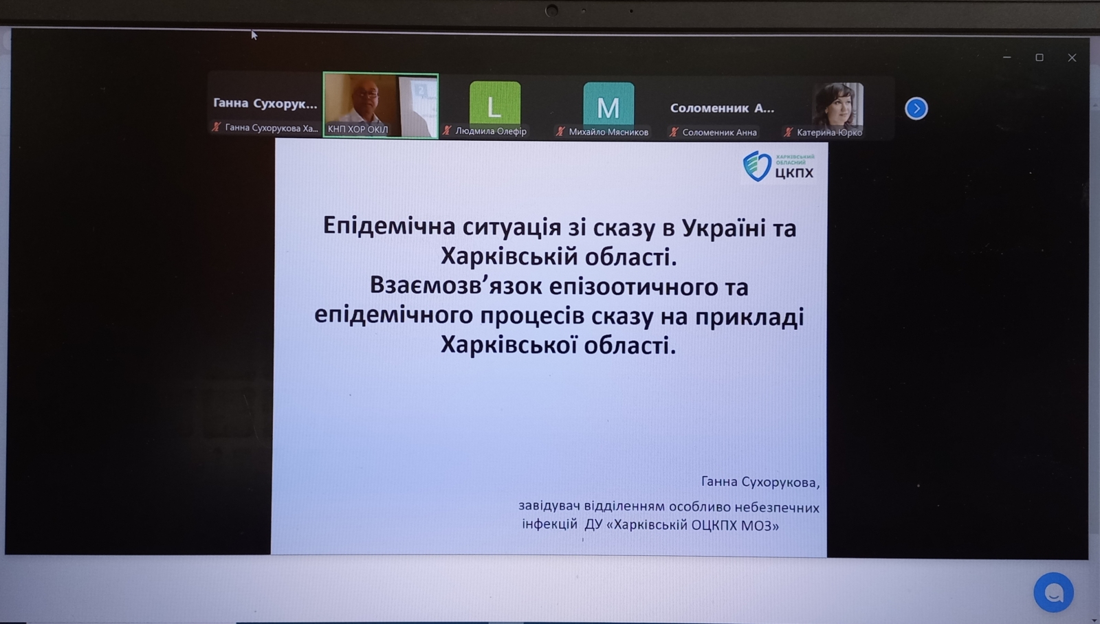 З доповіддю «Епідемічна ситуація зі сказу в Україні та Харківській обласні. Взаємозв’язок епізоотичного та епідеміологічного процесів сказу на прикладі Харківської області» виступила завідувач відділення особливо небезпечних інфекцій ДУ «Харківський ОЦКПХ МОЗ» Ганна Сухорукова.