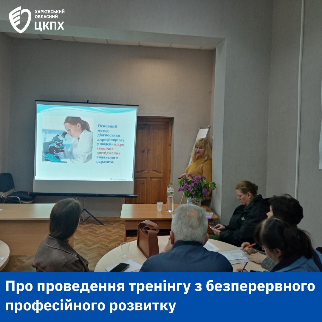 24 квітня на базі ДУ «Харківський ОЦКПХ МОЗ» проведений тренінг з безперервного професійного розвитку на тему «Дирофіляріоз. Епідеміологічний нагляд. Основні принципи діагностики, лікування та профілактики».