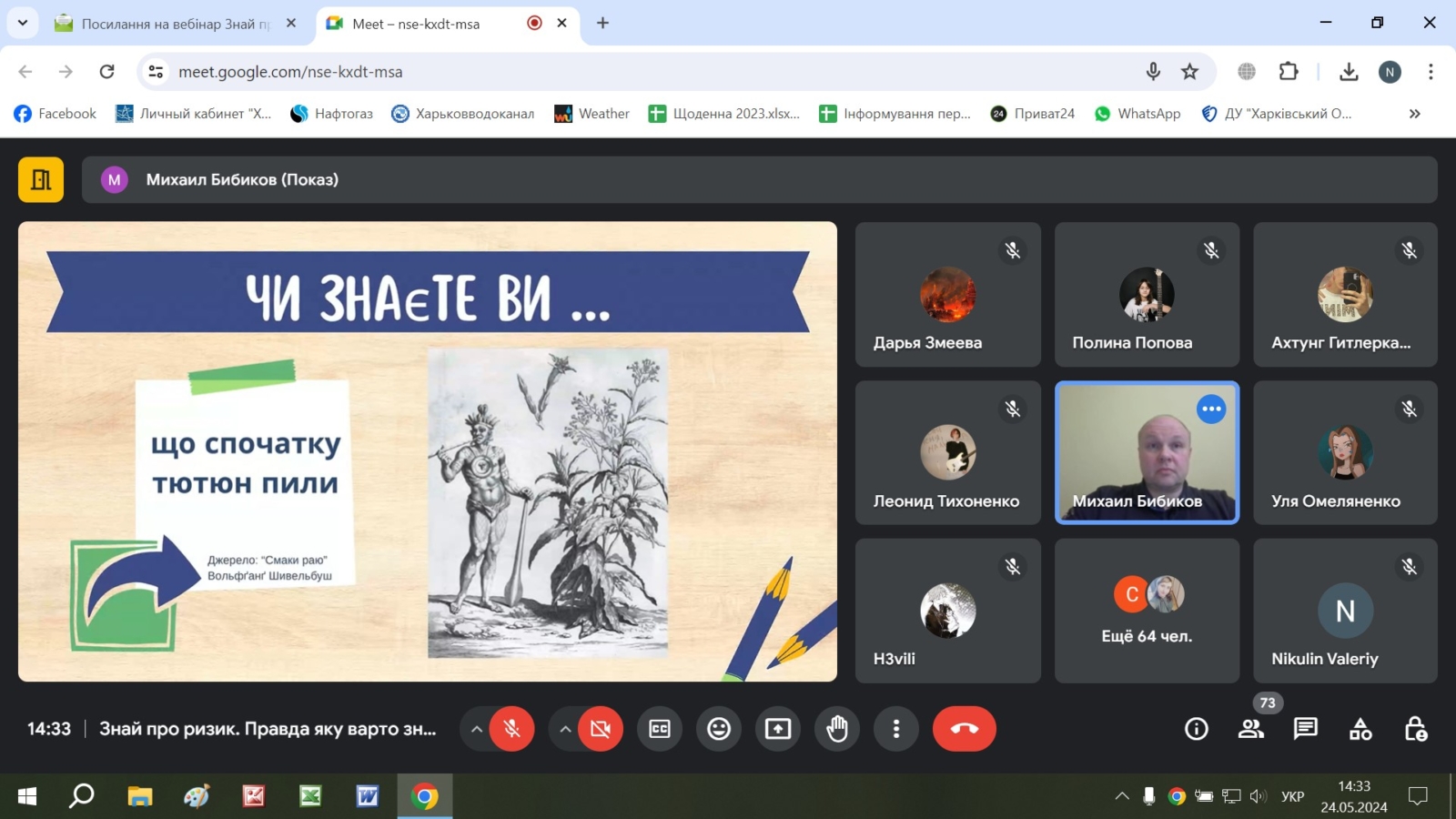 28 травня 202422-29 травня фахівці відділу епідеміологічного нагляду (спостереження) та профілактики неінфекційних хвороб ДУ «Харківський ОЦКПХ МОЗ» провели серію вебінарів на тему: «Знай про ризик – правда про куріння, яку варто знати» для учнів, вчителів та психологів в закладах загальної середньої освіти м. Харків та Харківської області. Заходи присвячені Міжнародному дню відмови від куріння – 31 травня.