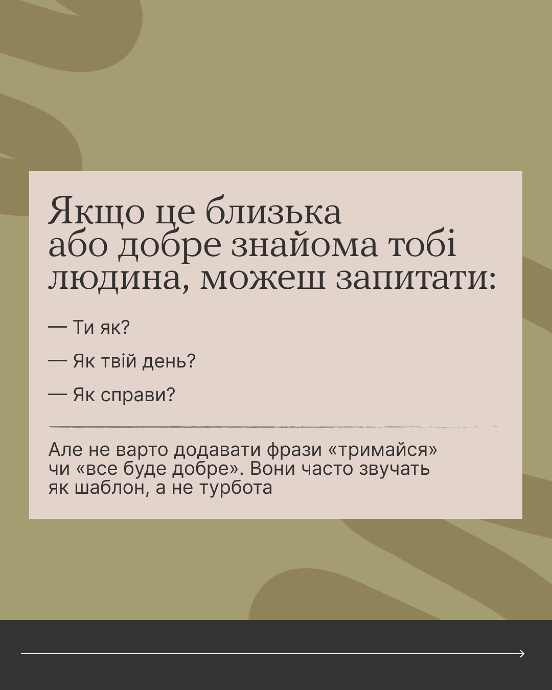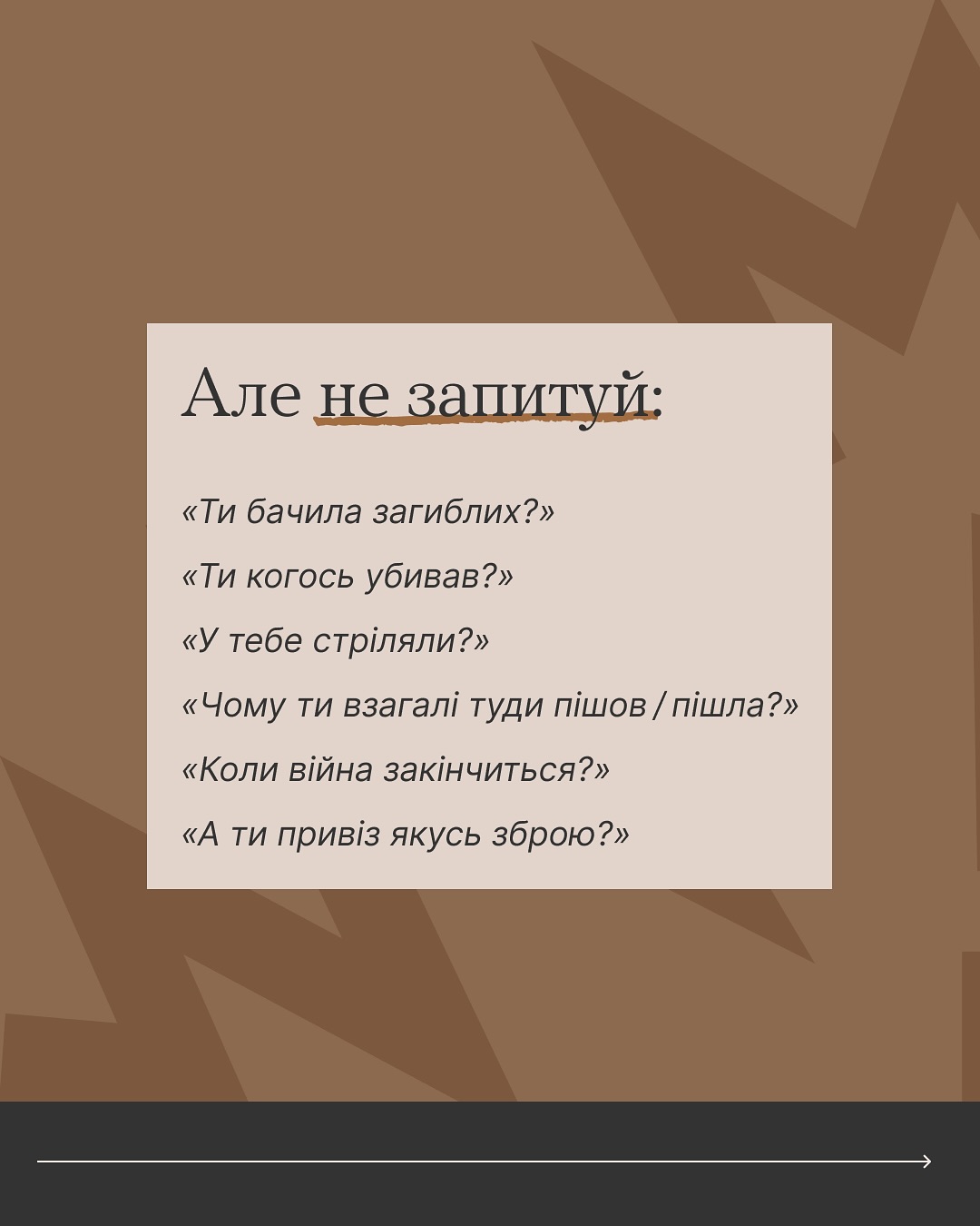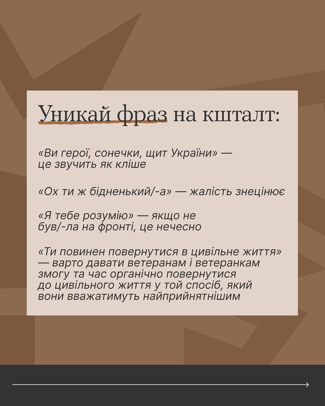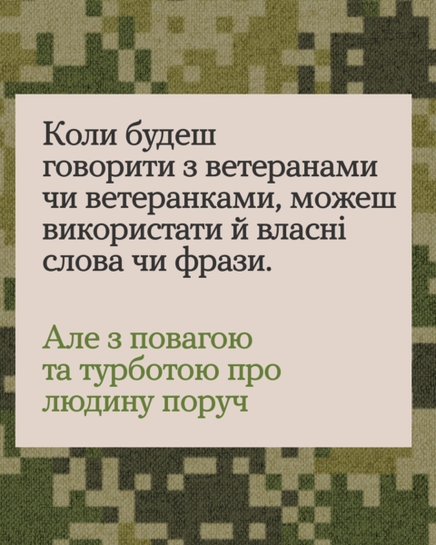 18 листопада 2025Якщо переживаєш, що в розмові з ветераном чи ветеранкою можеш сказати щось не те — читай карусель 👉