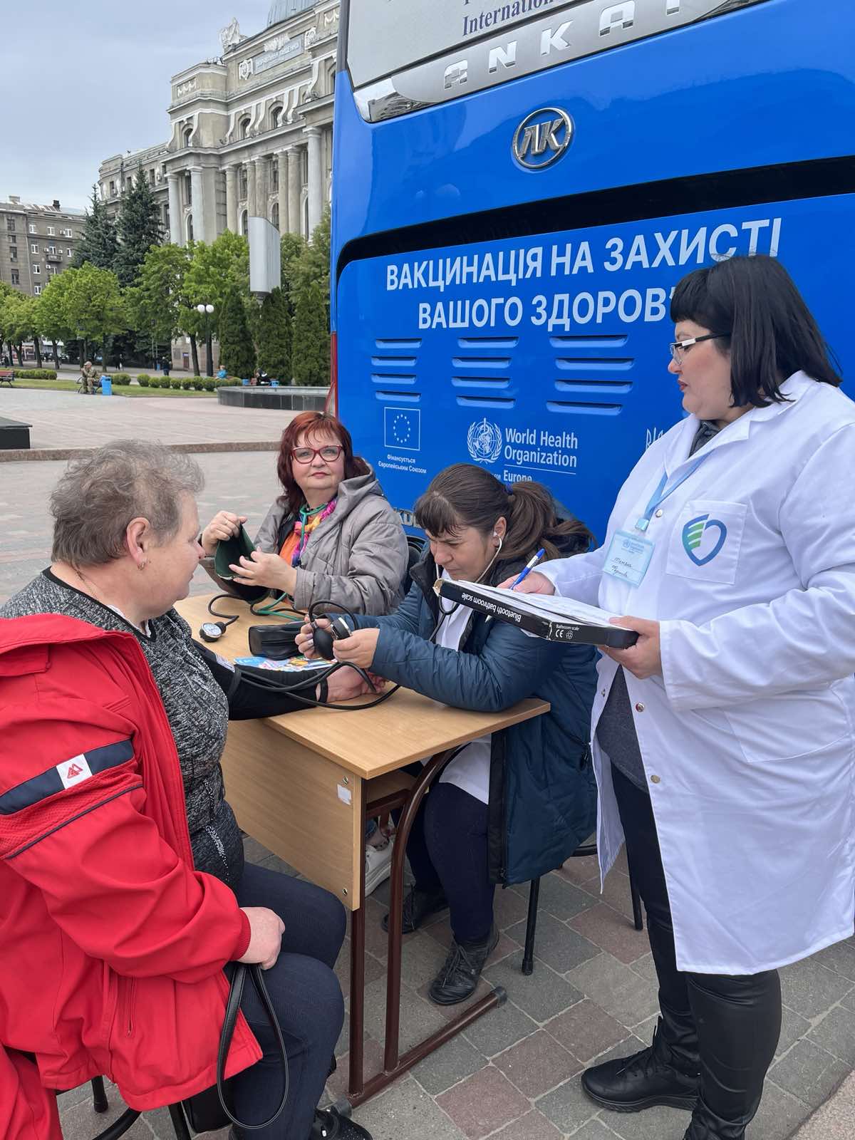 В м. Харків на площі Привокзальній,1 фахівцями Харківського обласного центру контролю та профілактики хвороб спільно з представниками Департаменту охорони здоров’я Харківської обласної військової адміністрації сьогодні проведені комунікаційні заходи, присвячені Всесвітньому дню боротьби з артеріальною гіпертензією та Європейському тижню громадського здоровʼя.