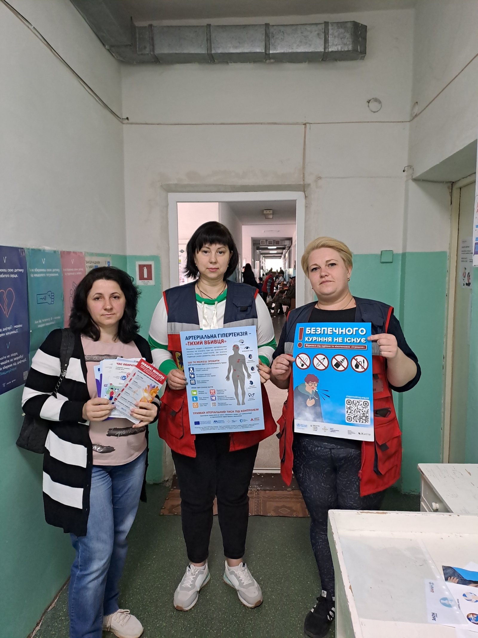 Під час зустрічей населення та медичні працівники проінформовані про поведінкові фактори ризику неінфекційних хвороб, проведені лекції та бесіди на теми: «Здоров’я – це вибір кожного», «Профілактика інфаркту міокарда», «Не пропустіть артеріальну гіпертензію! Вчасно прийдіть до лікаря!», «Промоція здорового способу життя» тощо. Поширювались інформаційні листівки: «Артеріальна гіпертензія – тихий вбивця», «Час обирати здоров’я», «Фактори ризику інфаркту міокарда», «Вимірювання артеріального тиску», «Безпечного куріння не існує». Охочі мали змогу пройти анкетування для оцінки залежності від нікотину та ризику розвитку інсульту.
