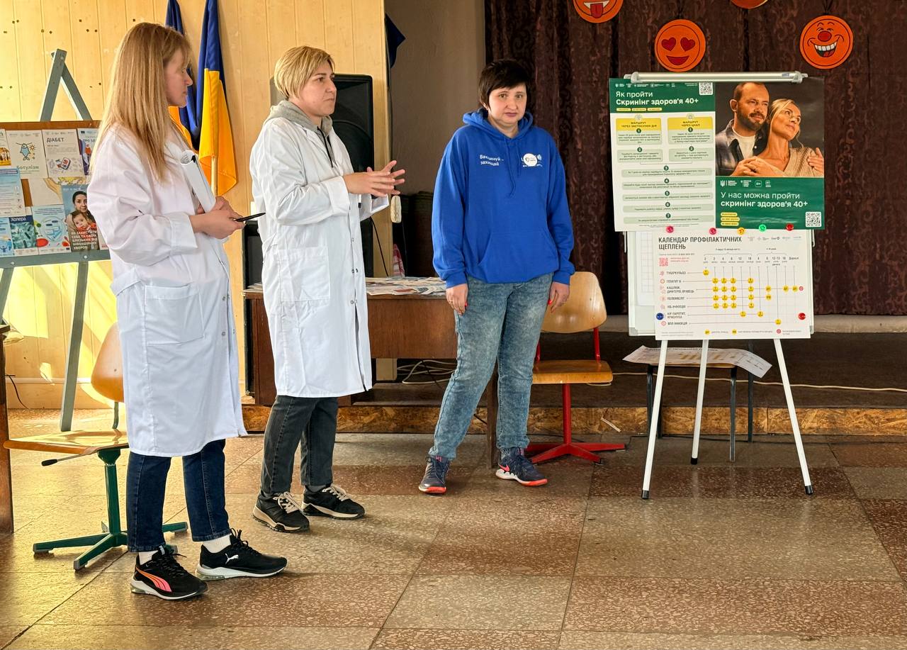 Говорили про інфекційні та неінфекційні захворювання, їх попередження, роз’яснювали можливості Національної програми «Скринінг 40+», а також знайомили з оновленим Національним календарем профілактичних щеплень.
