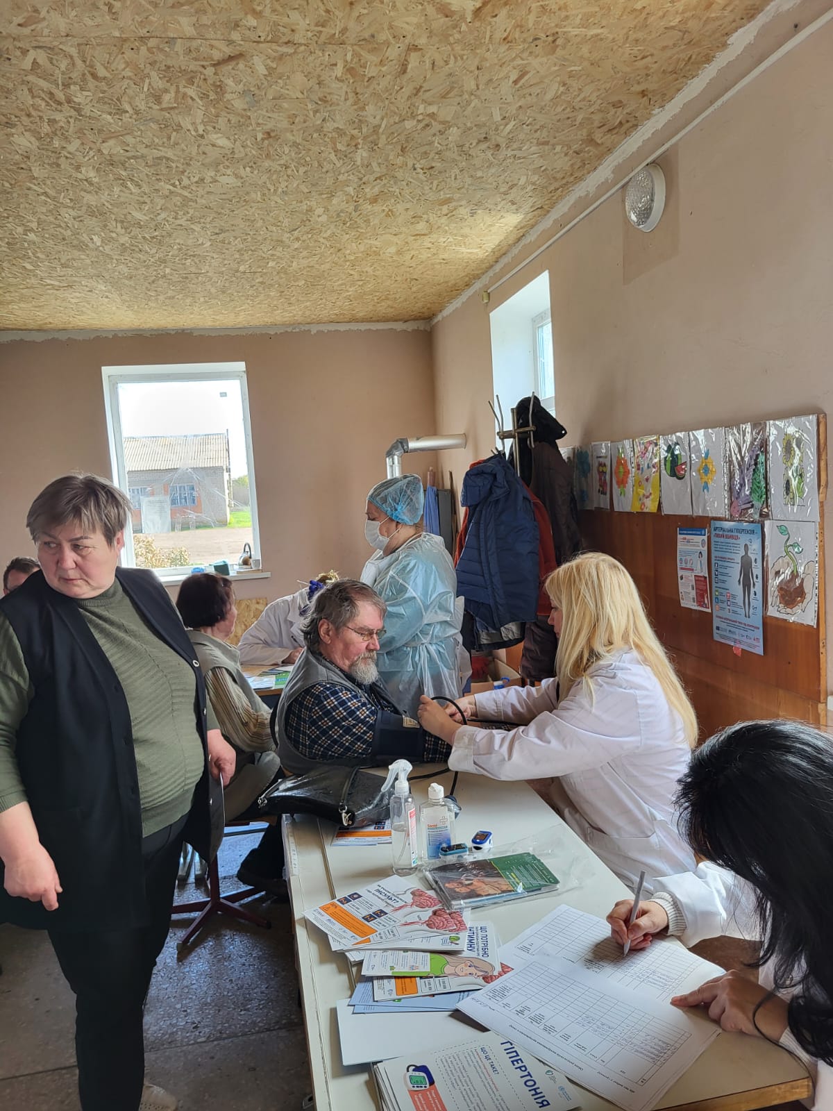 Практична частина була не менш важливою. Усі охочі могли виміряти артеріальний тиск, рівень кисню та глюкози в крові, визначити індекс маси тіла, проконсультуватись у сімейного лікаря, а також пройти опитування щодо рівня тривожності, депресії та ризику інсульту. За бажанням мешканцям пропонували здати мазки на COVID-19.
