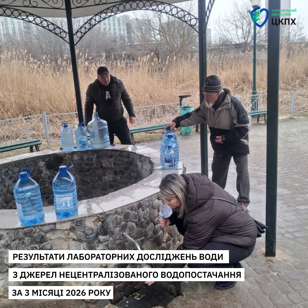 За 3 місяці 2026 року у Харківській області за санітарно-хімічними показниками досліджено 179 проб води з джерел нецентралізованого водопостачання (колодязі, каптажі джерел), з яких 40,2% не відповідали вимогам ДСанПіН 2.2.4-171-10 «Гігієнічні вимоги до води питної, призначеної для споживання людиною».