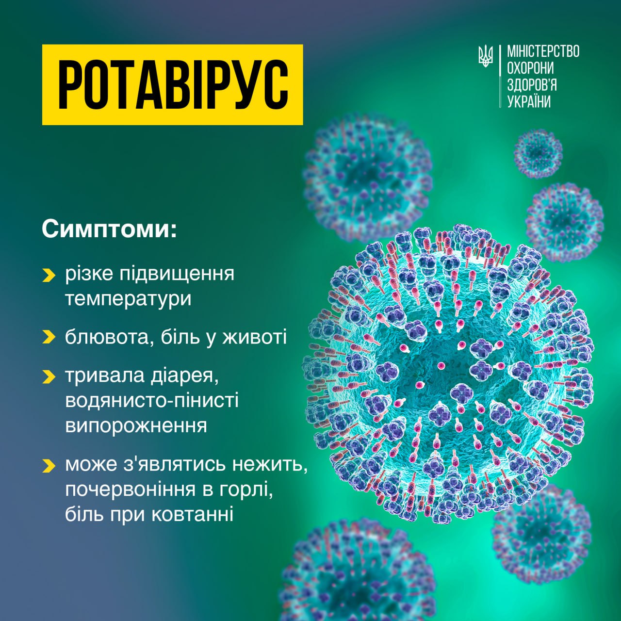 Перебування у місцях скупчення людей і обмежений доступ до чистої води – передумови появи та поширення «кишкових» захворювань. Вони легко передаються від людини до людини та особливо небезпечні під час війни. Перші ознаки ротавірусної інфекції – різке підняття температури і блювота, пізніше з’являється тривала діарея.