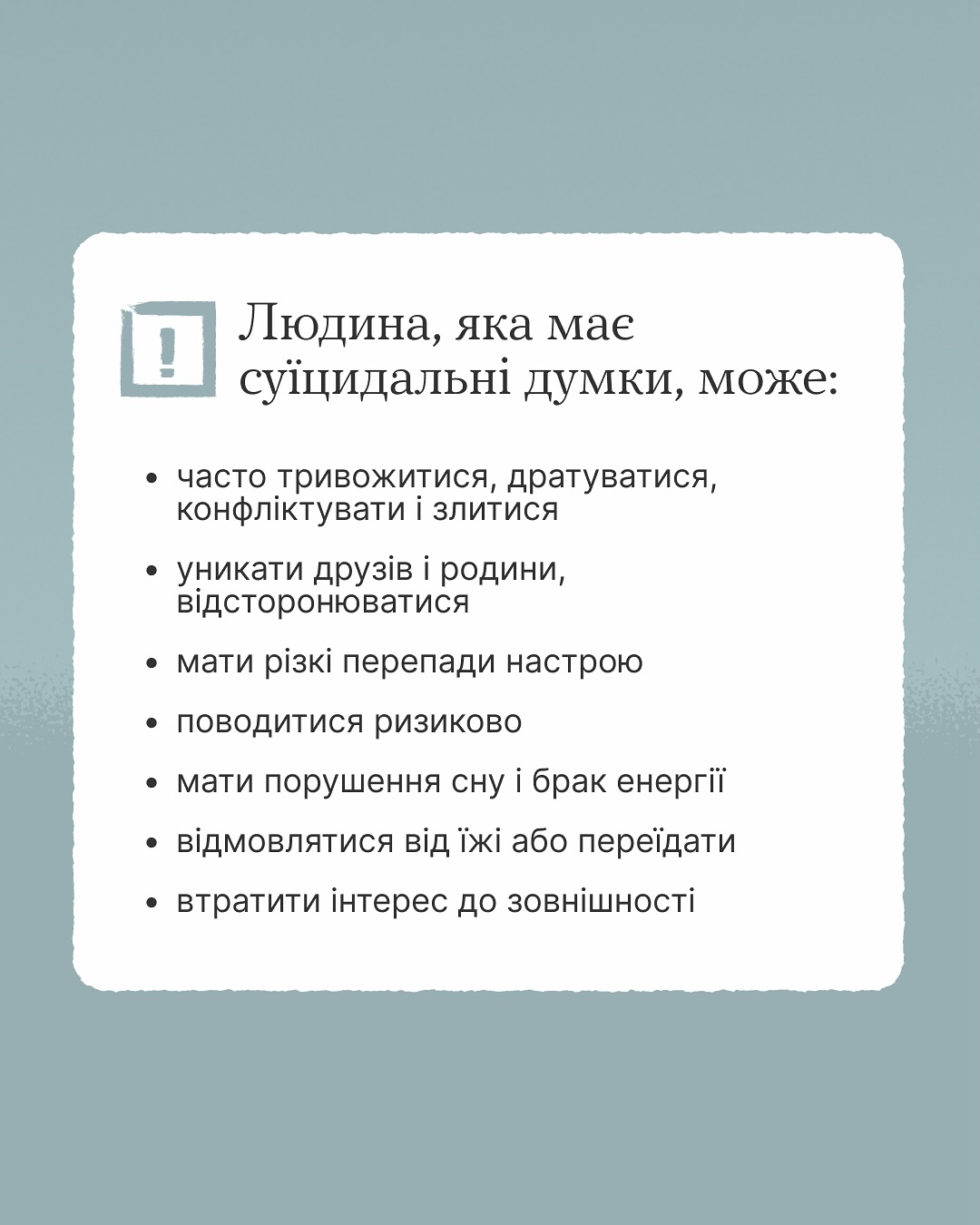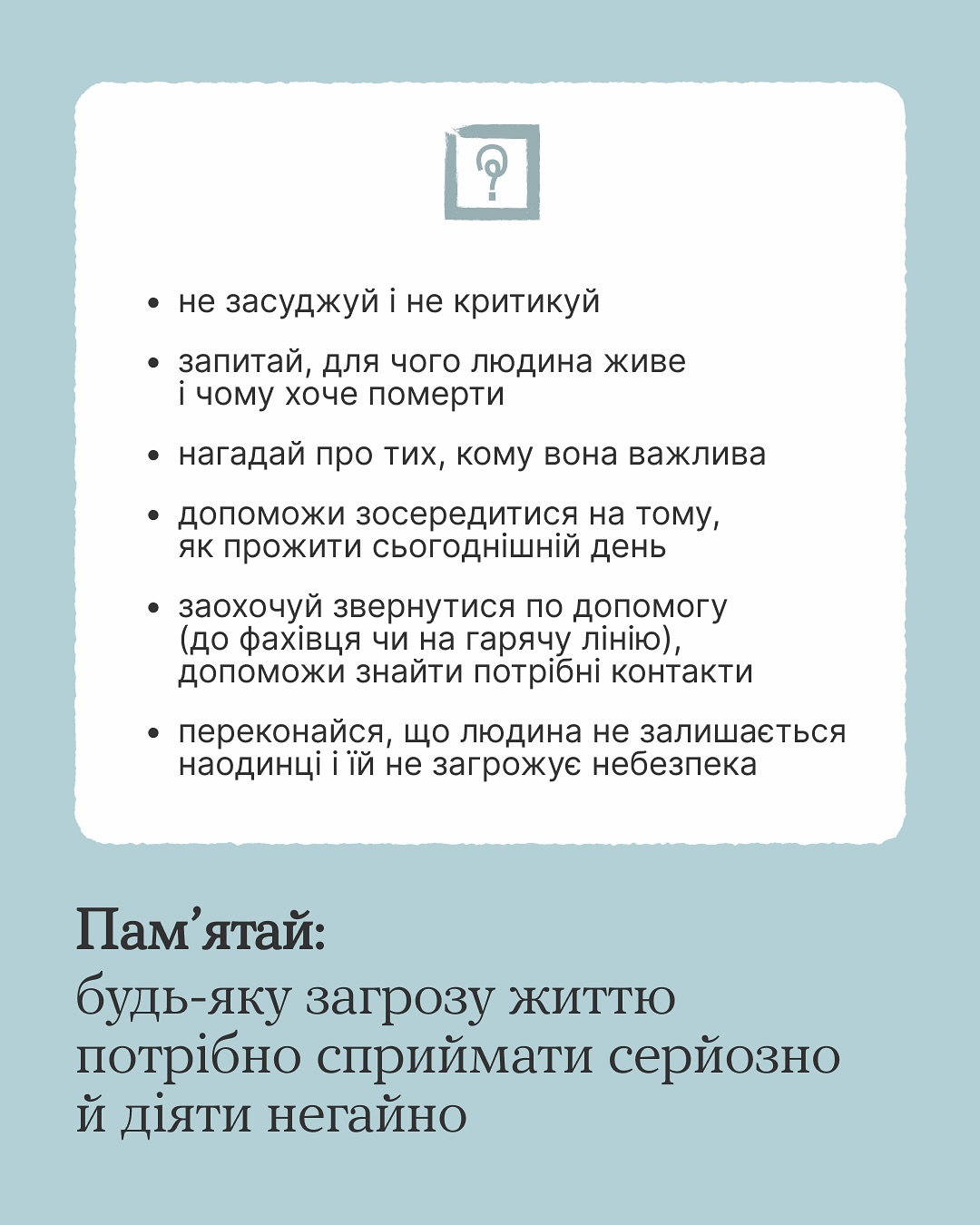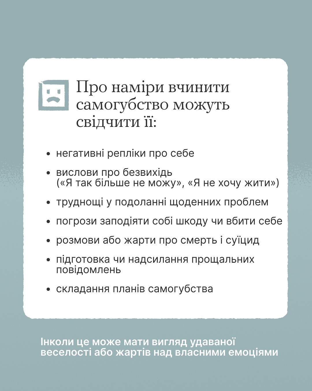 Дивися в каруселі, як розпізнати, що людина думає про суїцид, і що можна зробити.