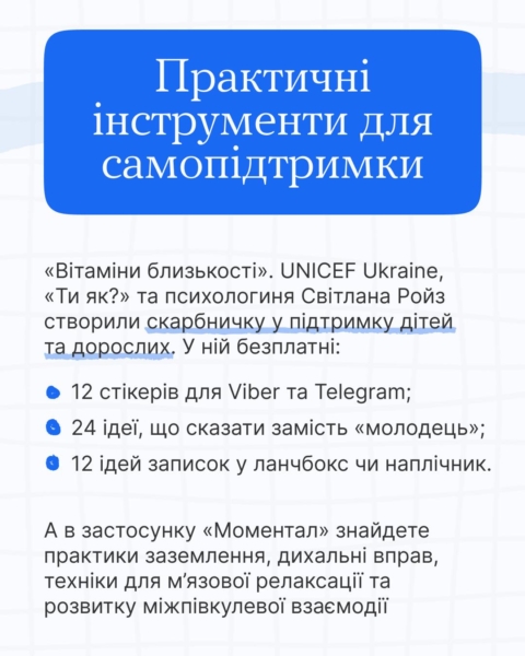У каруселі ідеї, як потурбуватися під час навчального року. Разом їх зібрали Мрія та психологиня Світлана Ройз у співпраці з Ти як? та UNICEF Ukraine. Гортайте
