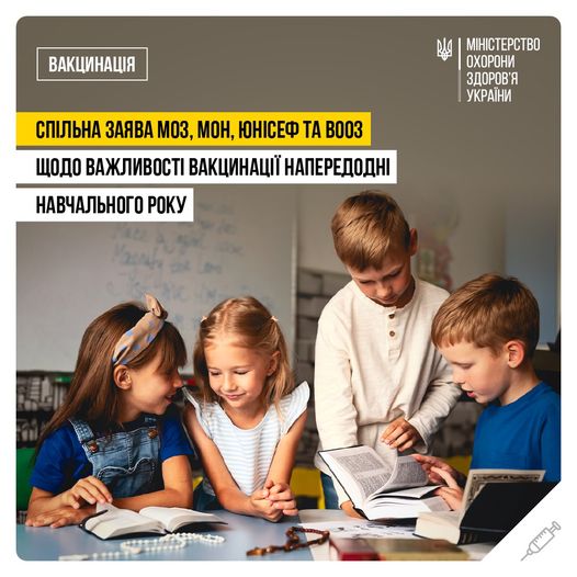 Перед школою діти мають отримати усі щеплення за віком, передбачені Національним календарем профілактичних щеплень (https://bit.ly/3AKpbBO)