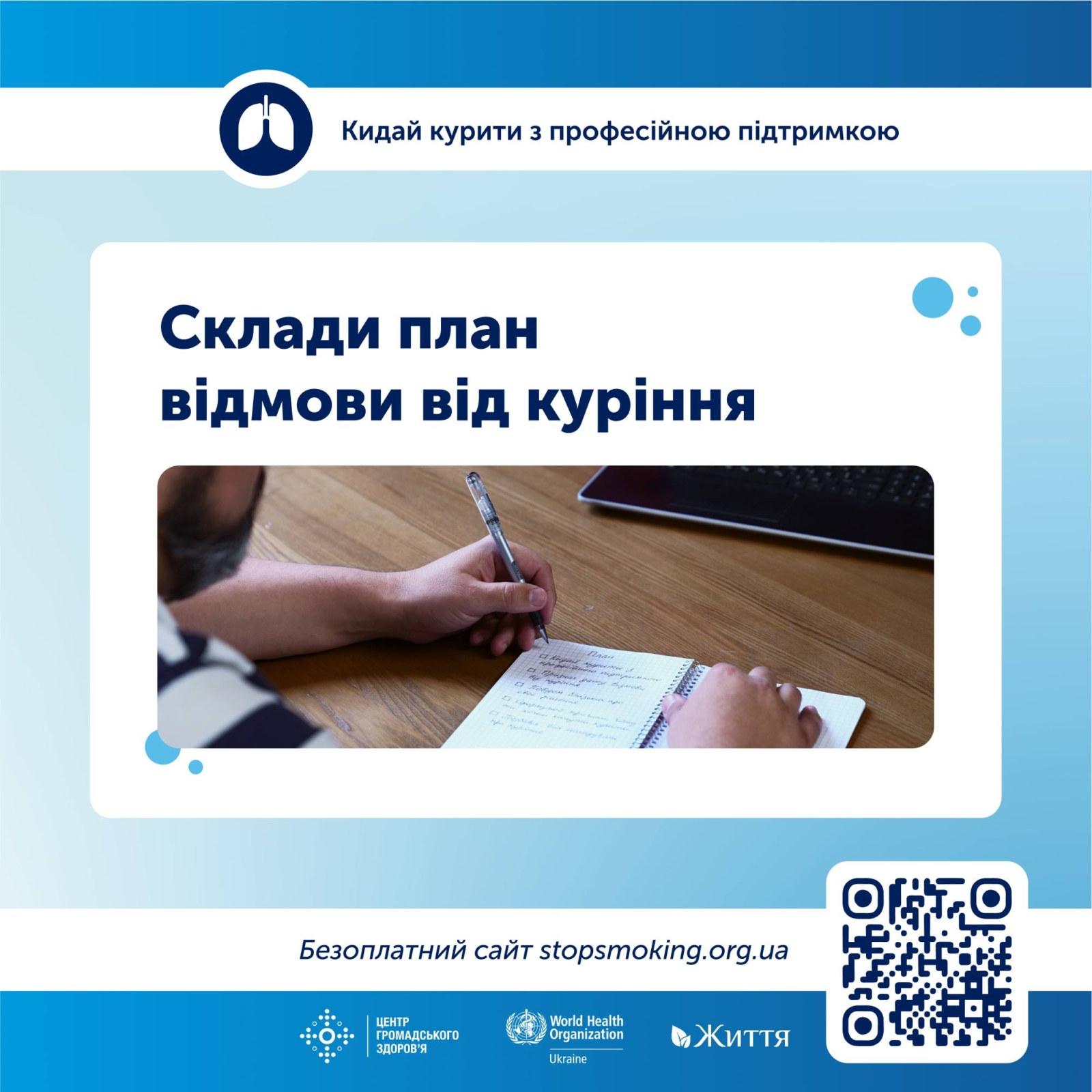 Шукай більше деталей, як скласти свій план відмови від куріння, тут: https://stopsmoking.org.ua/section/plan-pripinennia-kurinnia